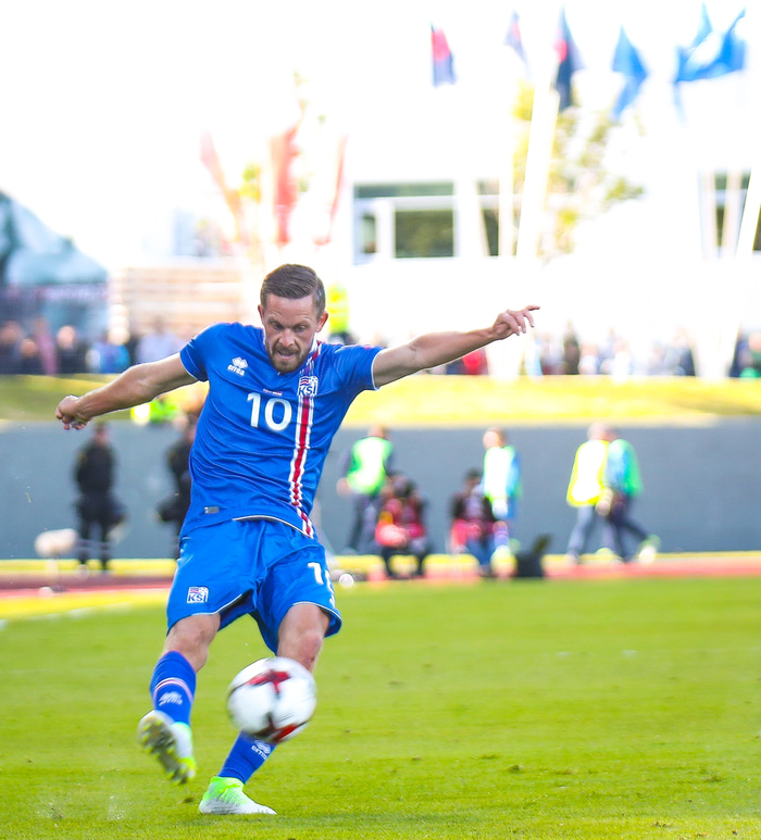 „Jújú, ef það verður eitthvað vesen þá geri ég það kannski," sagði Gylfi léttur í bragði.