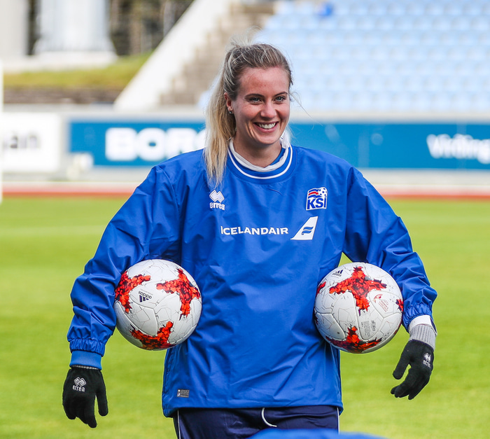 Berglind skoraði þrennu í síðari hálfleik og lagði upp mark. Hún var kát að leikslokum.