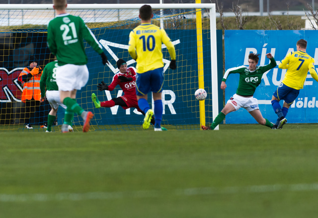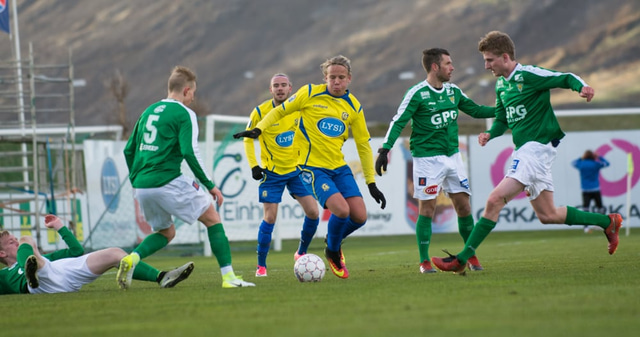 Will Daniels og Sam Hewson sáu um mörk heimamanna. Will Daniels með fjögur og Sam Hewson með þrjú. Það var síðan Eyþór Traustason sem skoraði fyrir Völsunga. 7-1 niðurstaðan og Grindvíkingar áfram í næstu umferð.