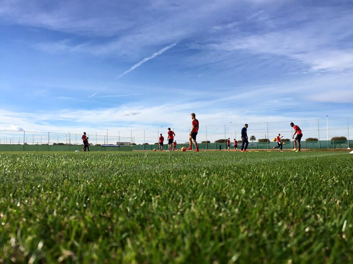„Aðstaðan þarna er auðvitað annar lykilþátta, hún er frábær og getur vart verið betri. Pinatar Arena,æfingamiðstöðin á suður Spáni, var byggð 2013 með þarfir knattspyrnufólks í huga. Þangað koma lið hvaðanæfa að til að undirbúa sitt tímabil. 6 frábærir grasvellir,fótboltatennisvellir og allur aðbúnaður annar, eins og best verður á kosið."