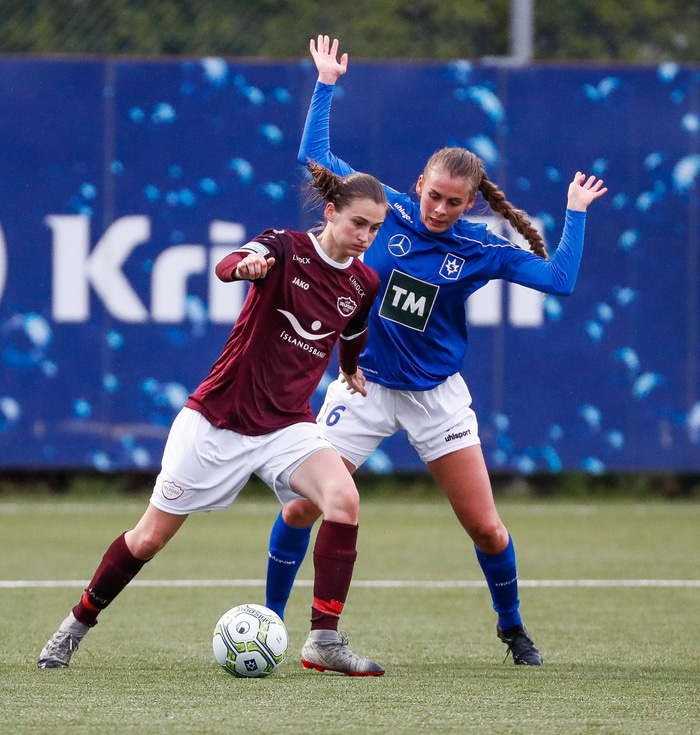 Sveindísarlaust Keflavíkurlið verður í miklu basli gegn Íslandsmeisturunum. Agla María skorar þrennu, Kristín Dís eitt og Selma Sól opnar markareikning sinn í sumar.