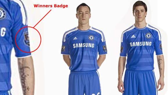 Á opinberum myndum af búningi Chelsea fyrir næsta tímabil má finna gull-litað merki ensku úrvalsdeildarinnar.