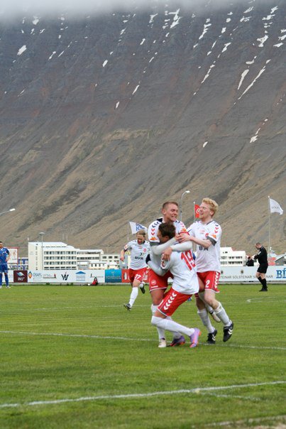 Það verður seint sagt að veðrið hafi leikið við áhorfendur á Torfnesvelli í kvöld þegar BÍ/Bolungarvík og HK áttust við. Norðangarrinn var svo kaldur að fréttaritari greip til þeirra ráða að bregða sér í gamla góða föðurlandið í hálfleik.