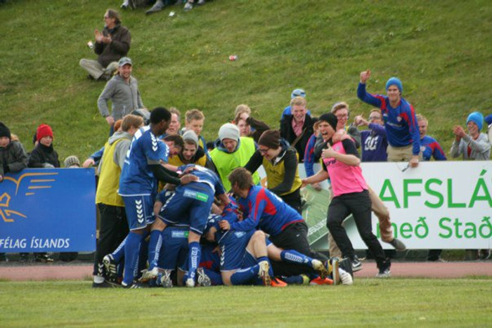 Tveim mínútum seinna fengu BÍ/Bolungarvík innkast út við hægra hornið. Hafþór Atli Agnarsson kastaði boltanum í fæturna á Tomi Ameobi sem snéri með varnarmann í bakinu og sendi hann fyrir á Andra Rúnar Bjarnason sem skoraði örugglega.