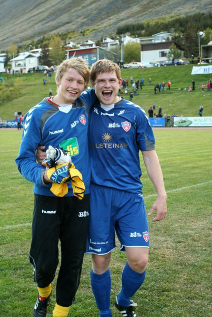 Eftir tæplega hálftíma leik fengu Vestfirðingar hornspyrnu. Boltinn barst eftir það út fyrir teiginn þar sem Zoran Stamenic vippaði honum aftur inn í boxið. Þar stökk Atli Guðjónsson manna hæst og skallaði hann fyrir fæturna á Tomi Ameobi sem afgreiddi hann með tánni framhjá Sigmari i markinu.