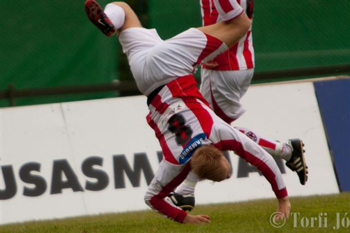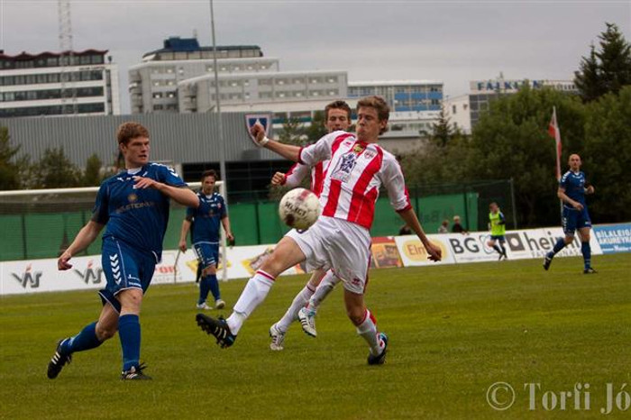 Þessi forysta stóð ekki nema í rúmar fimm mínútur því varnarjaxlinn Dusan Ivkovic jafnaði fyrir Þrótt í kjölfarið á hornspyrnu. Jens Elvar Sævarsson fékk boltann og sendi laglega fyrir á hinn hávaxna Ivkovic sem skoraði með skalla.