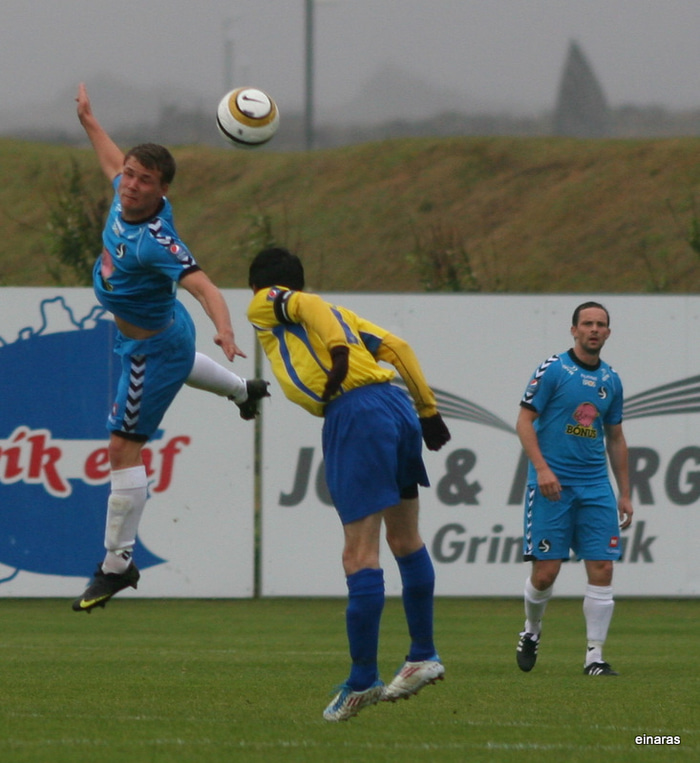 Robert Winters skoraði mark Grindavíkur. Hér er hann í barátttu við Andra og Ingimund Níels Óskarsson.