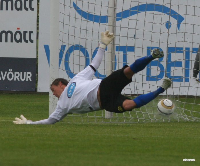 22.mín Kjartan Ágúst Breiðdal með gott skot, en Óskar Pétursson slær boltann í horn. Vel varið hjá Óskari.