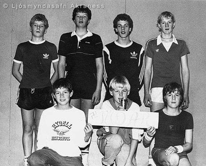 4. flokkur karla: Örn Gunnarsson, Alexander Högnason, Árni Þór Hallgrímsson, Haraldur Hinriksson, Valdimar Kr. Sigurðsson, Stefán Viðarsson, Ólafur Skúli Guðmundsson, Ægir Jóhannsson, Halldór Jónsson þjálfari. Neðri röð frá vinstri: Sigurður Elvar Þórólfsson, Rögnvaldur Sverrisson, Sveinbjörn Rögnvaldsson, Sveinbjörn Allansson, Bjarki Jóhannesson, Sigursteinn Gíslason, Sigurður Már Harðarson, Ingimar Erlingsson, Þórhallur Jónsson.