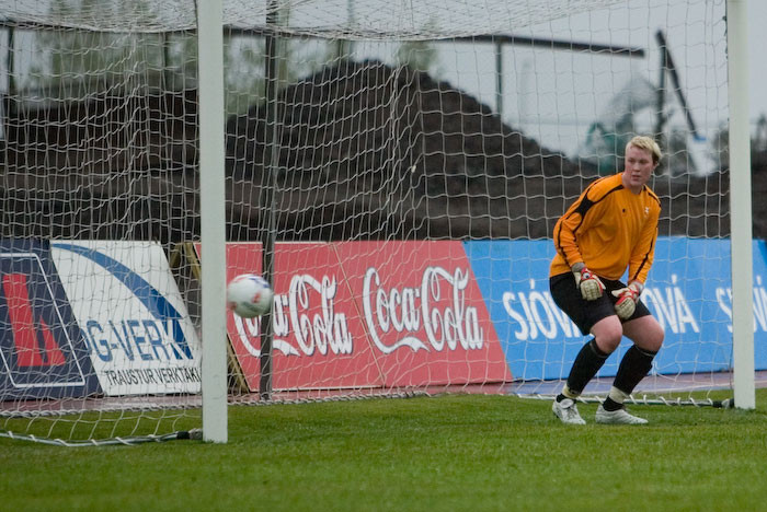 Ekki erfiðasti andstæðingur? Kalli þjálfari í marki á æfingum! (ok, hann er kannski ágætur) ;)