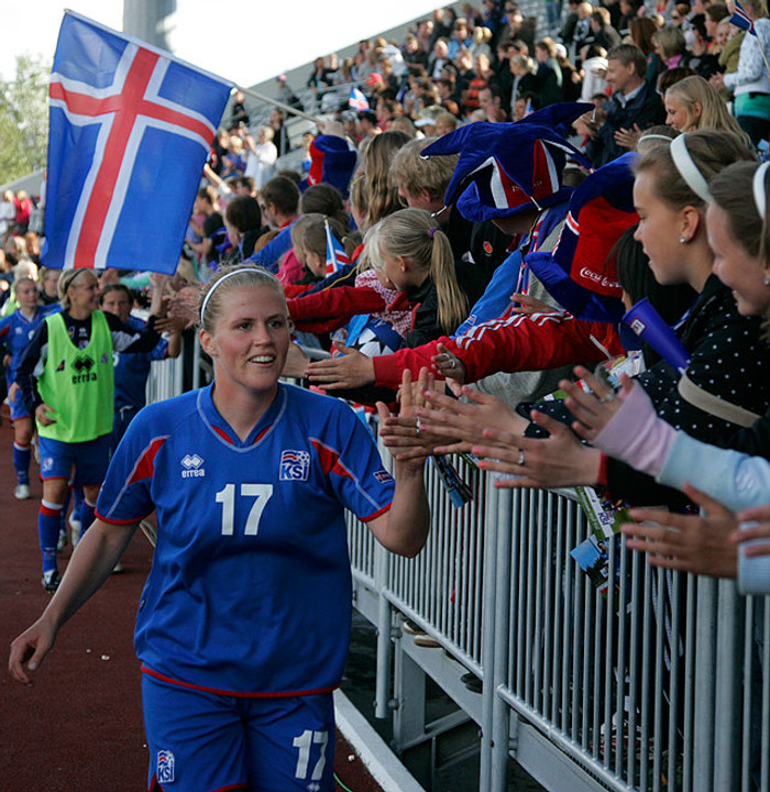 Ísland (4-5-1): Þóra Björg Helgadóttir (M), Ásta Árnadóttir, Katrín Jónsdóttir (F), Guðrún Sóley Gunnarsdóttir, Ólína Guðbjörg Viðarsdóttir, Dóra María Lárusdóttir, Edda Garðarsdóttir (Erla Steina Arnardóttir 59), Dóra Stefánsdóttir (Katrín Ómarsdóttir 50), Hólmfríður Magnúsdóttir, Sara Björk Gunnarsdóttir (Greta Mjöll Samúelsdóttir 74), Margrét Lára Viðarsdóttir.