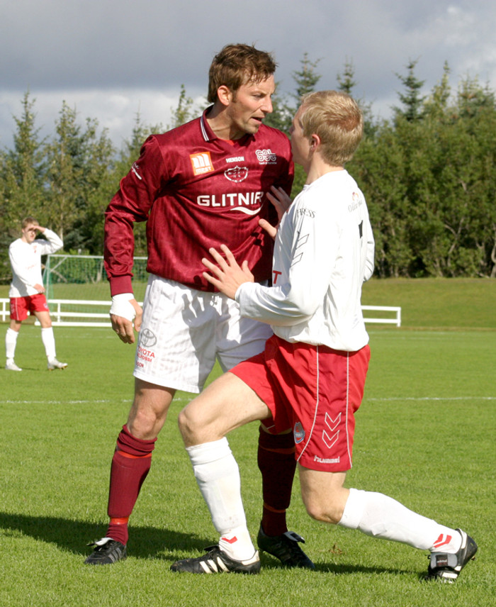 ,,Jón Guðbrandsson var eitthvað að monta sig að hann væri markahæstur í liðinu þegar hann var kominn með tvö mörk. Hann hefur ekki skorað síðan og ég vissi alltaf að ég myndi fara fram yfir hann enda held ég að hann eigi ekki eftir að skora meira í sumar."