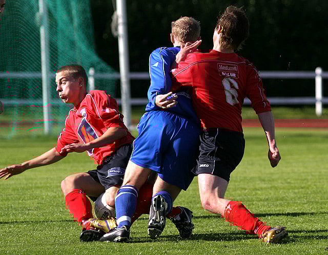 Búningar: Rauð treyja, svartar stuttbuxur, rauðir sokkar.