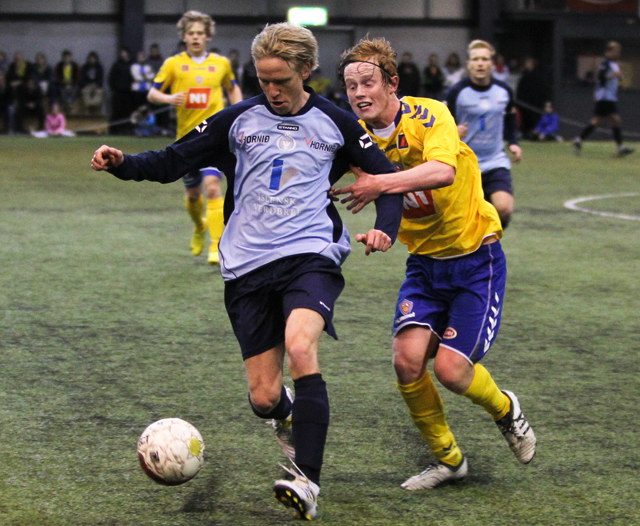 Vörnin gaf sig þó tvisvar í seinni hálfleiknum. Hallgrímur Mar Steingrímsson skoraði fyrsta markið með góðu skoti úr vítateigsboganum eftir undirbúning frá Andra Fannari Stefánssyni og Guðmundi Óla bróður sínum. Seinna markið kom undir lok leiksins þegar Haukur Heiðar Hauksson hamraði boltann í netið eftir gott samspil við Dan Stubbs.