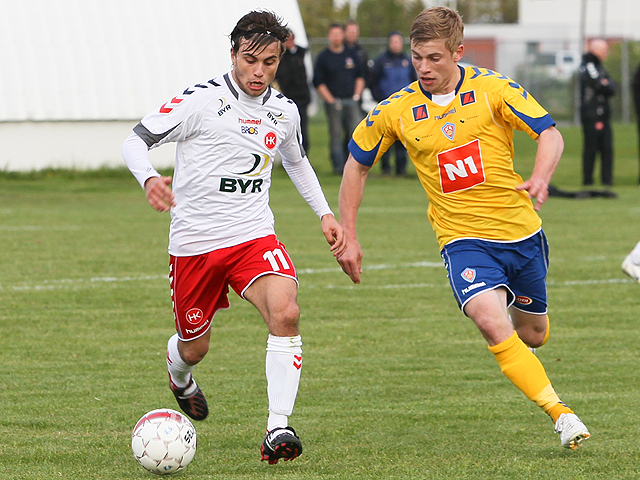 KA-menn eiga farseðil í 16-liða úrslitin en HK-ingar sitja eftir með sárt ennið eftir erfiðan leik sem hefði þó í rauninni allt eins getað dottið þeim í vil en mikill hraði var oft í leiknum og fengu bæði lið nóg af færum.