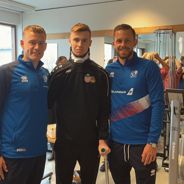 Aron Sigurvinsson lenti í alvarlegu bílslysi um verslunarmannahelgina síðustu. Hann barðist fyrir lífi sínu fyrstu dagana og hefur síðan gengist undir margar aðgerðir og erfiða endurhæfingu.