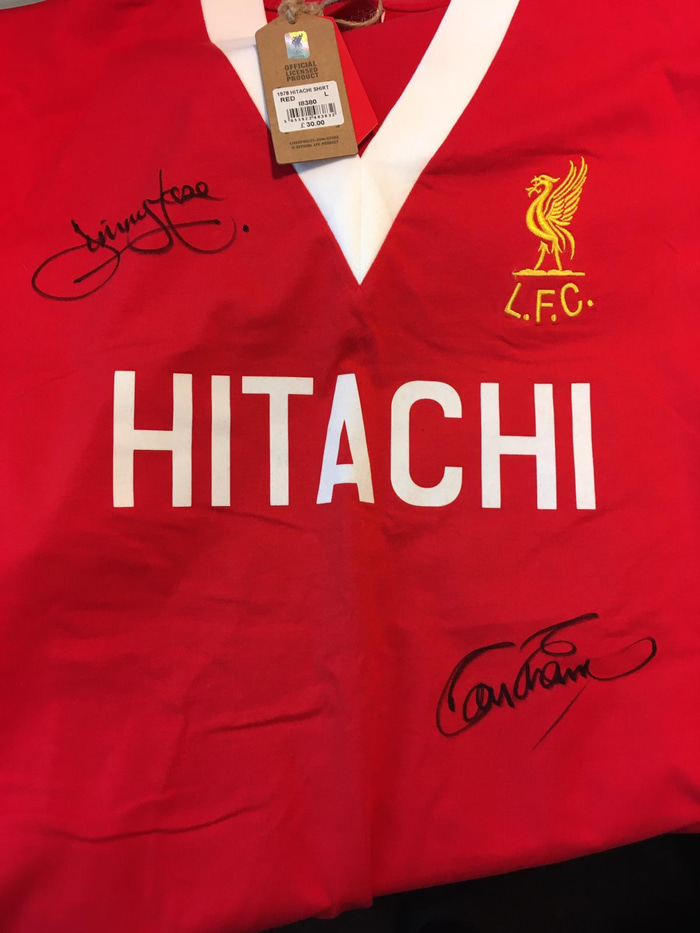 Liverpool frétti af góðum gangi í uppboðinu og því mun fylgja með boltanum treyja Liverpool frá árinu 1978. Um er að ræða treyju sem er árituð af Roy Evans og Jimmy Case en treyjuna má sjá hér til hliðar.