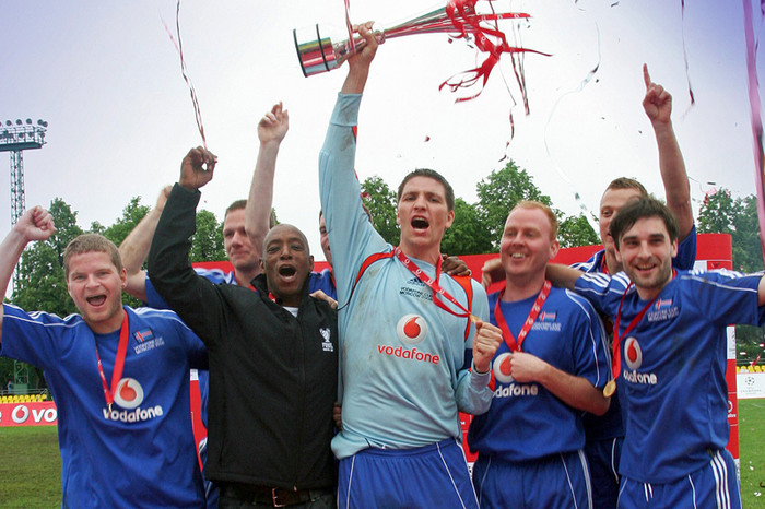 Vodafone hefur haldið mót af þessu tagi erlendis um árabil, að undangengnum forkeppnum í ýmsum löndum. Aðeins einu sinni áður hefur íslenskt lið tekið þátt í úrslitakeppni Vodafone Cup, en það var í Moskvu árið 2008. Þá gerðu Íslendingar sér lítið fyrir og unnu mótið eftir að hafa lagt lið Spánar í úrslitaleik. Meðfylgjandi ljósmyndir voru teknar að við verðlaunaafhendinguna í Moskvu, en það var markahrókurinn Ian Wright sem gerði garðinn frægan hjá Arsenal sem afhenti verðlaunin.