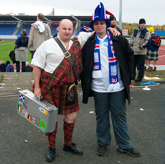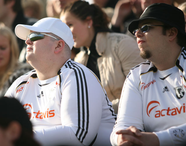 En þó svo við höfum gengið lengst í að styðja FH reyndum við á tímapunkti að ganga eins eftir íslenska landsliðinu en sögðum stopp og gáfumst upp þegar við áttuðum okkur á að KSÍ mismunar áhorfendum gríðarlega eftir stétt og stöðu. Eftir það hættum við alfarið að kaupa okkur miða á landsleiki, horfðum heldur saman á í sjónvarpi þegar ég þurfti ekki að starfa við leikina á vegum Fótbolta.net.