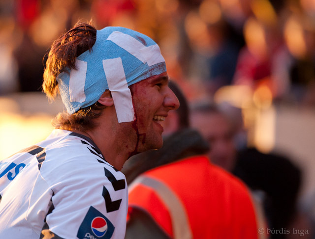 ,,Þetta lítur verr út en þetta er. Ég er með smá höfuðverk í dag en ekkert meira en eftir aðra leiki. Þetta lítur illa út í sjónvarpinu, auðvitað var mikið blóð og það voru saumuð fjögur spor eftir leikinn en þetta hefði getað verið verra."