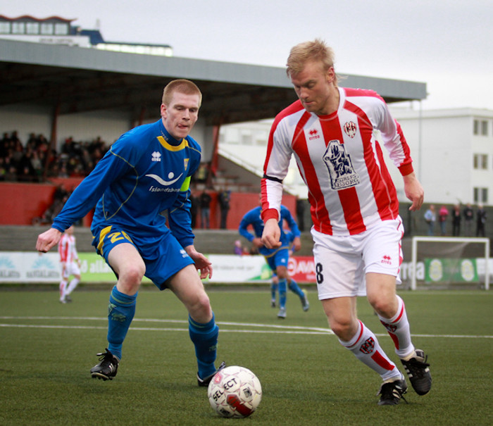 Sveinbjörn kom Þrótti yfir í síðari hálfleiknum en það dugði ekki til sigurs í leiknum í kvöld.