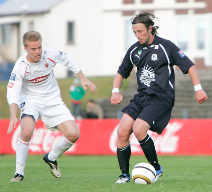 Guðmundur Steinarsson bætti markamet Keflavíkur með því að skora í kvöld en fyrra metið átti faðir hans Steinar Jóhannsson. Guðmundur býst við að kíkja í kaffi til pabba gamla eftir að hafa náð metinu af honum.