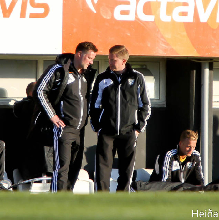 Eftir leikinn í gær var staldrað við og auðvitað rætt um fótbolta og fyrstu umferðina. Alls konar viðhorf og ólíkar meiningar á hvað væru óvænt úrslit og hvað ekki, svona eins og gengur og gerist. Spjallið var langt og úr ýmsum áttum, enda ekki bara fulltrúar liðanna tveggja á staðnum.