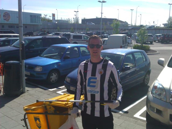 Garðar Jóhannsson, framherji Stjörnunnar, átti síðustu áskorunina í fyrra og í vor ákvað hann að skora á Kjartan Henry Finnbogason framherja KR að týna rusl í Garðabæ í KR búning.