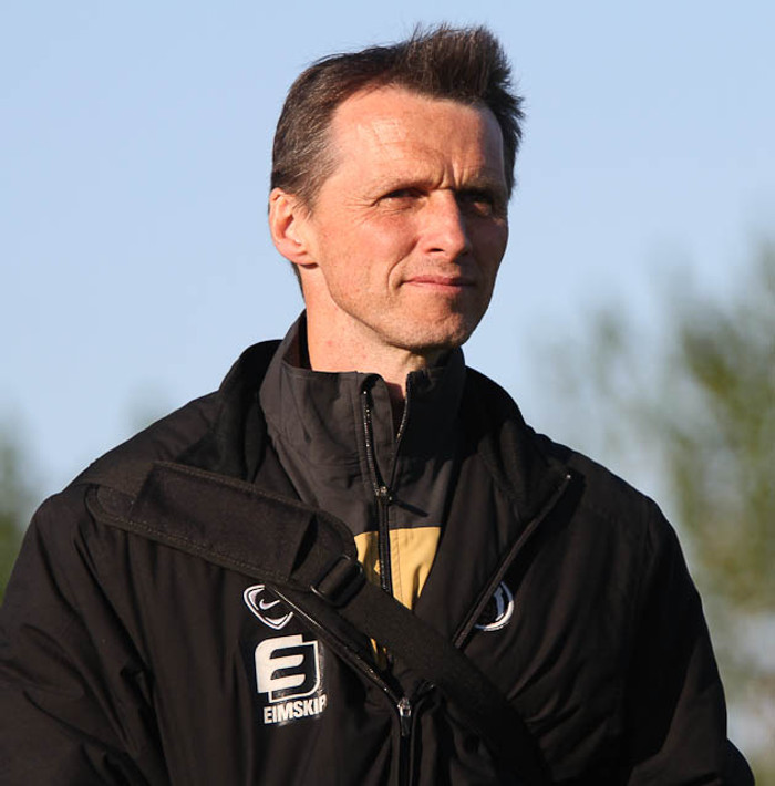,,Það er spurning sko hvort við snúum þessu við núna," sagði Jón Þór og hló. ,,En ræðan eftir leik er frekar leiðinleg, það má fara að breyta henni."