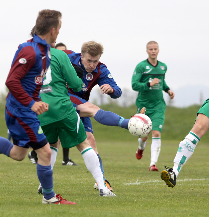 „Markvörðurinn átti gott tímabil í fyrra þegar við fórum upp úr 3. deildinni. Hann er að stíga aftur upp núna," segir Helgi sem er á nítjánda aldursári en byrjaði að leika með KFR 2008. Hann hefur því mikla reynslu þrátt fyrir ungan aldur.
