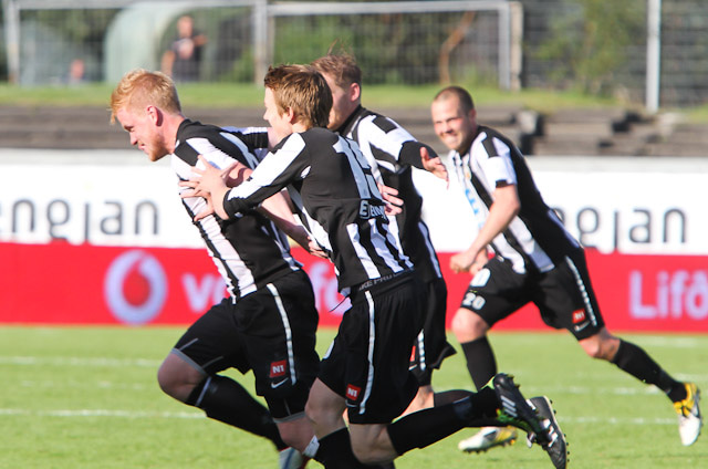 Baldur skoraði tvívegis í leiknum en í síðara markinu þrumaði hann á nærstöngina framhjá Gunnleifi Gunnleifssyni.