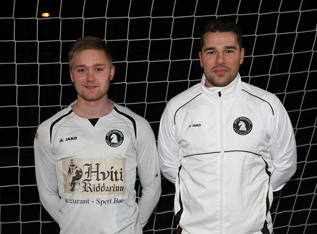 Kristján Sigurðsson fógeti Hvíta riddarans ásamt Guðmundi Mete þegar þjálfunarsamningurinnn var handsalaður.