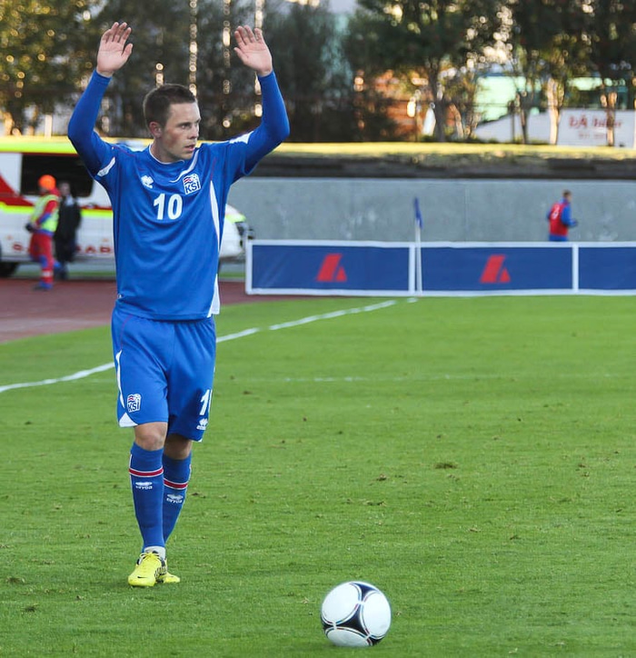 Skoraði tvö. Geislar af sjálfstrausti. Fyrra mark hans var hreint stórfenglegt og eitt fallegasta mark sem íslenskt landslið hefur skorað.