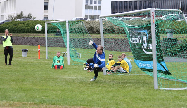 Gunnleifur Gunnleifsson, landsliðsmarkvörður, stóð á milli stanganna undir lokin þegar tólf keppendur stóðu eftir.