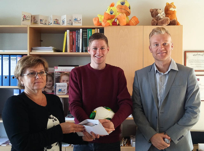 Ragna Kristín Marinósdóttir framkvæmdastjóri Umhyggju, Magnús Már Einarsson ritstjóri Fótbolta.net og Sveinbjörn Jónasson mótstjóri vítaspyrnukeppninnar.