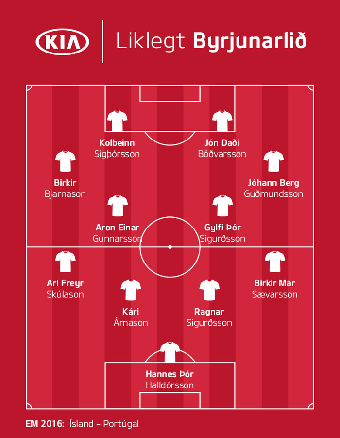 Helsta umræðuefnið varðandi byrjunarliðið er hvort Alfreð Finnbogason eða Jón Daði Böðvarsson byrji í sóknarlínunni. Þetta var meðal umræðuefna í fyrsta þættinum af EM-innkastinu þar sem rýnt var í líklegt byrjunarlið.