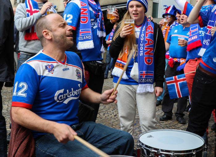 Hann var þá ásamt öðrum mönnum í Tólfunni í Fanzone í St Etienne að bíða eftir leik Íslands og Portúgals sem er í kvöld.