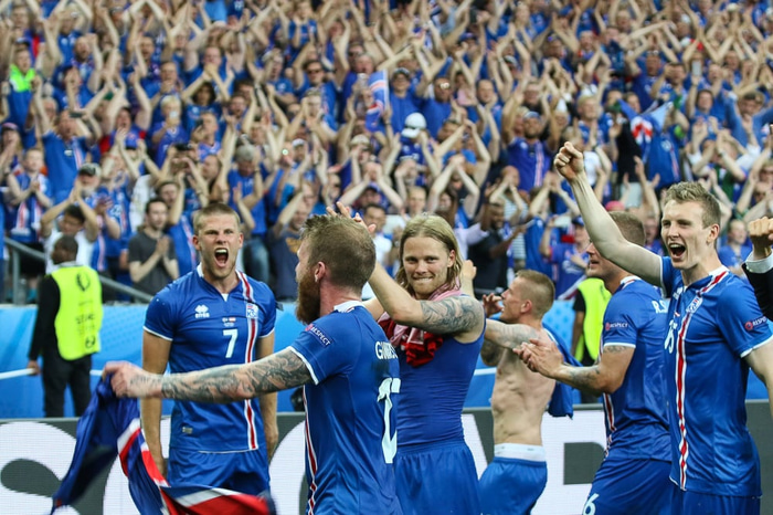 Gleði íslenskra stuðningsmanna var ósvikin þegar þeir fögnuðu 2-1 sigrinum á Austurríki í kvöld.