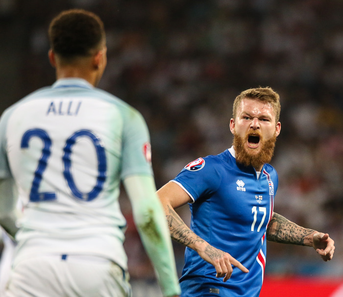 Aron hefur verið að glíma við meiðsli í kringum mótið en hann var á fullu allan leikinn í kvöld. Undir lokin átti hann meðal annars sprett sem endaði með skoti sem Joe Hart varði.