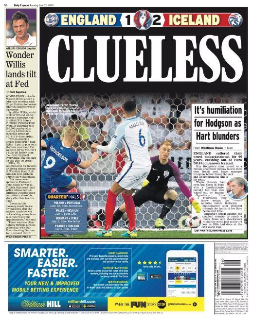 Enska pressan iðar í skinninu og mun á næstu dögum njóta þess til hins ítrasta að hrauna yfir leikmenn Englands eftir tap gegn Íslandi í 16-liða úrslitum EM.