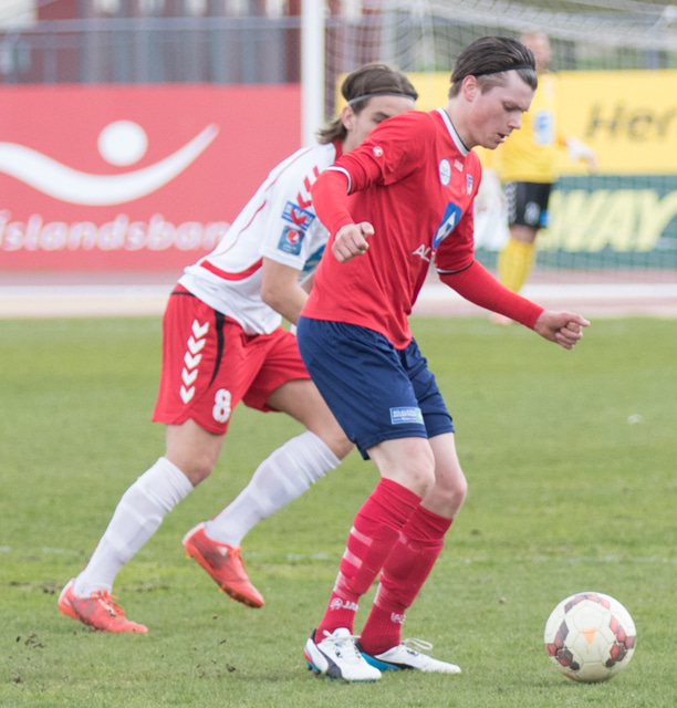 „Ég er þokkalega sáttur með fína frammistöðu. Mér fannst fyrri hálfleikurinn ekkert sérstakur því boltinn var mikið í loftinu og færðist illa á milli kanta en í þeim seinni náðum við honum niður og vorum að spila þrusuvel og við kantararnir vorum meira í boltanum. Hefði líklega átt að skora annað mark þegar Fannar kemur með hann inn fyrir á mig en skeit illa í því færi en maður á þá bara inni."