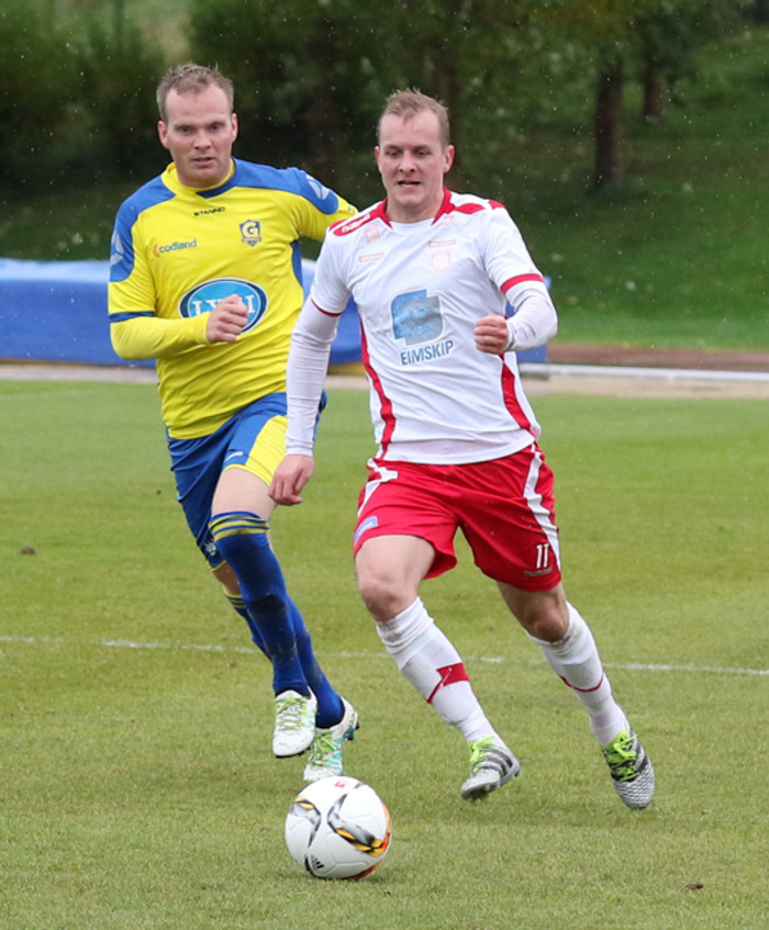 Þór vann leikinn, 4-3 en Grindavík er búið að tryggja sér sæti í Pepsi-deildinni á næsta ári.