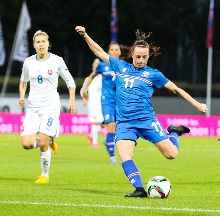 Íslenska kvennalandsliðið mætir Slóveníu í undankeppni EM á Laugardalsvelli klukkan 18:45 í kvöld.