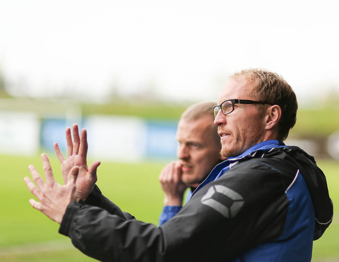 „Ég er með frábæran mann með mér og við erum samstíga í þessu. Við settum gróft plan og beinagrind sem við ætlum að vinna eftir. Við ætlum ekki að breyta neinu," segir Óli og fer að tala um umtalað viðtal við Jónas Þórhallsson, formann knattspyrnudeildar, sem sagði að stefna liðsins væri að ná Evrópusæti á fyrsta tímabili í Pepsi-deildinni.