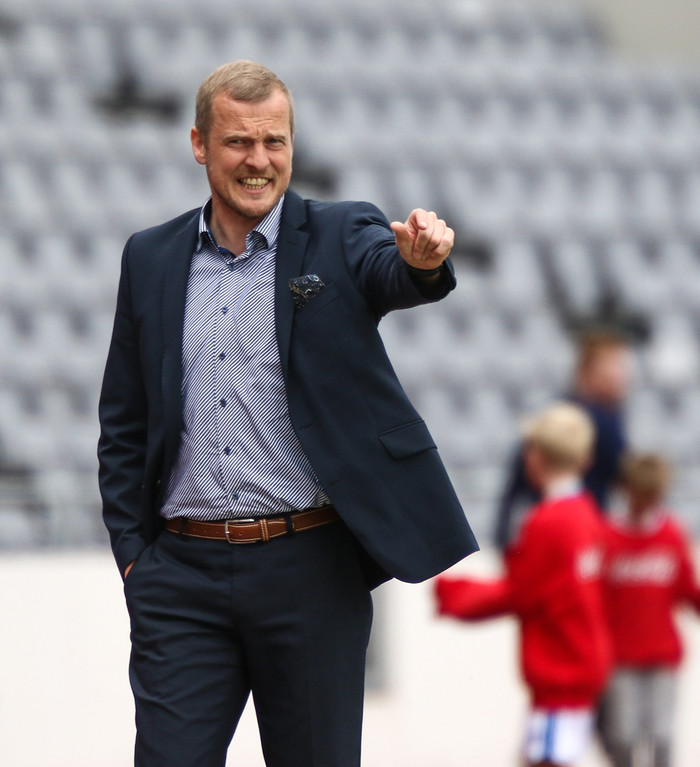 „Það er fyndið að það sé „tabú" að tala um miklar væntingar eða mikinn metnað. Það er nánast hlegið að því að hann ætli í Evrópukeppni strax og hlakkar í mönnum að sjá menn mistakast. Það er ekkert þannig hjá okkur. Okkur langar að fara í þetta Pepsi-dæmi með okkar sérkennum og á okkar forsendum. Svo sjáum við hverju það skilar en auðvitað verður það alltaf fyrsta markmið að halda lífi í þessari deild."