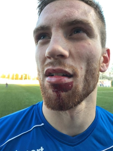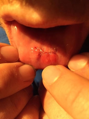 „Þetta voru sextán spor í allt. Ég fékk gat í gegnum vörina og það þurfti að sauma tíu spor utan á og sex innan á til að loka því," sagði Brynjar við Fótbolta.net í dag.