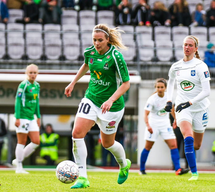 „Ég er byrjuð að æfa á fullu með Breiðablik og vinna upp þessa mánuði sem maður missti af. Það er búið að taka gríðarlega á að sitja á hliðarlínunni og horfa á þær spila en núna getur maður farið að æfa á fullu og koma sér í gott stand fyrir átökin í sumar," segir Berglind sem raðaði inn mörkum með Blikum síðasta sumar.