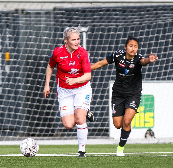 „Ég er flutt heim til Akureyrar og ætla að spila með Þór/KA næstu tvö árin hið minnsta. Ég er mjög ánægð með að vera komin heim eftir tvö frábær ár með Val. Mér finnst ég eiga mikið inni og langaði að koma heim og finna mig aðeins. Þannig að framundan er bara að æfa vel, komast inn í allt hér og undirbúa sig vel fyrir komandi tímabil," segir Arna sem er greinilega spennt fyrir endurkomunni norður.