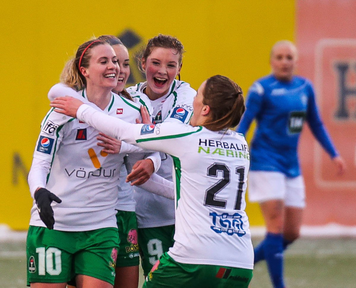 „Heilt yfir er ég bara nokkuð ánægð með spilamennskuna. Hún verður betri með hverjum leik þannig ég er mjög jákvæð fyrir framhaldinu. Við erum líka búnar að skora mikið af mörkum í fyrstu þremur leikjunum sem er frábært og fá bara þrjú mörk á okkur," sagði Berglind sem sjálf hefur skorað fimm mörk það sem af er tímabilinu.