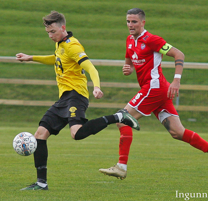 „Í fyrri hálfleik voru menn lengi að venjast grasinu sem var mjög blautt en þegar leið á leikinn náðum við að spila okkar bolta sem skilaði okkur marki. Það gaf okkur og mér sjálfstraust út allan leikinn. Seinni hálfleikurinn var góður, þar fékk ég meiri tíma með á boltann og gátum við keyrt vel a vörnina hjá þeim."